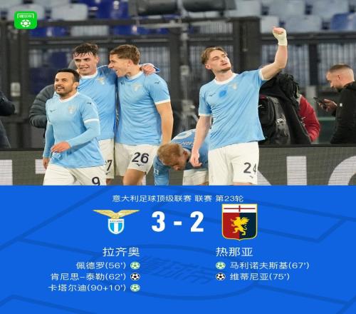 拉齐奥32热那亚,佩德罗、卡塔尔迪点射,泰勒破门