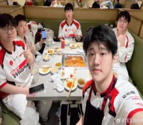 哥哥的参团率太高了!TES官方赛后晒选手聚餐返图:坚哥带上杰克吃一口 -