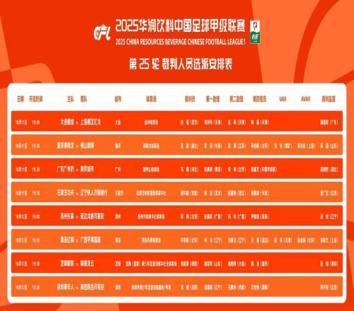 中甲26轮裁判选派:2场关键战启用VAR,多名中超裁判执哨! -